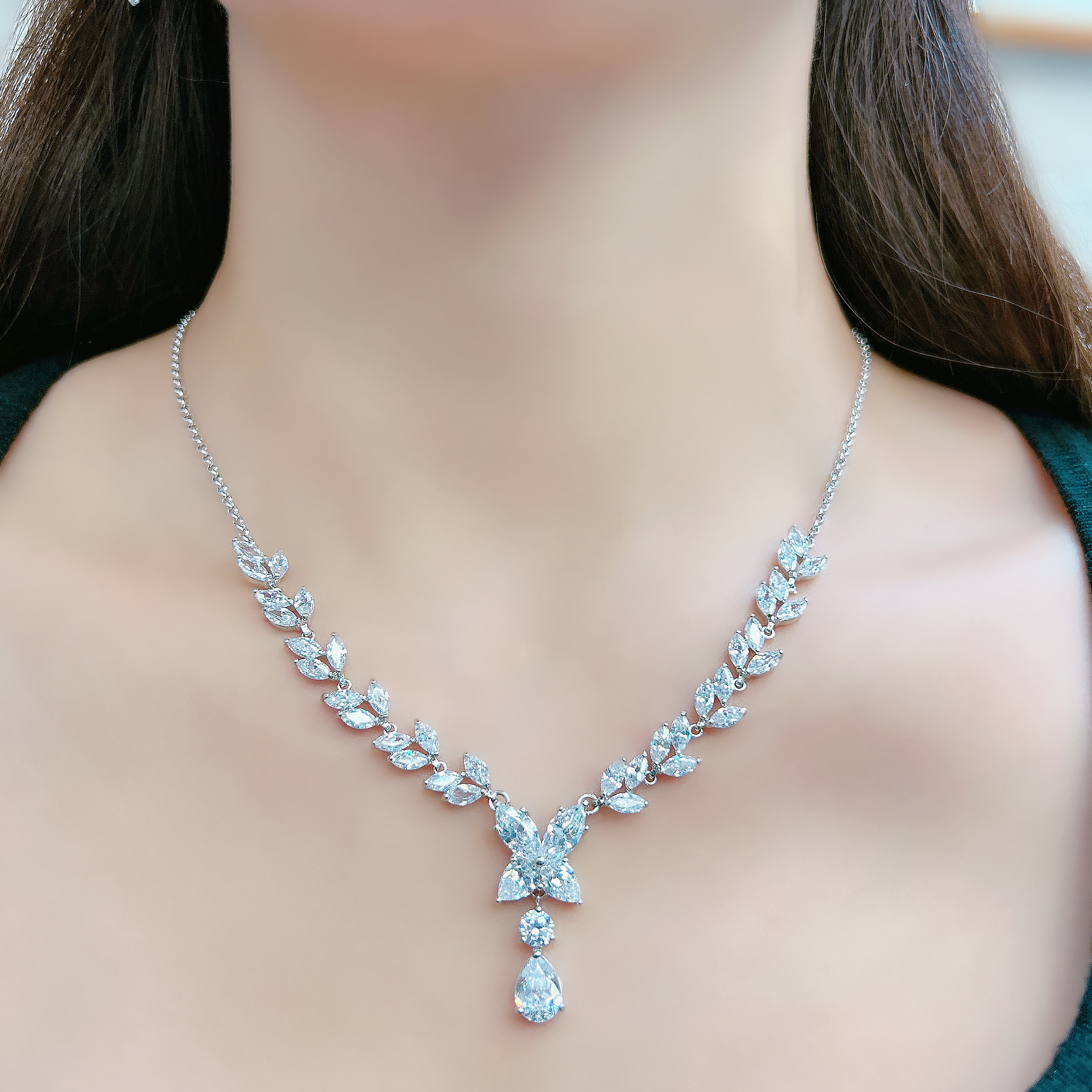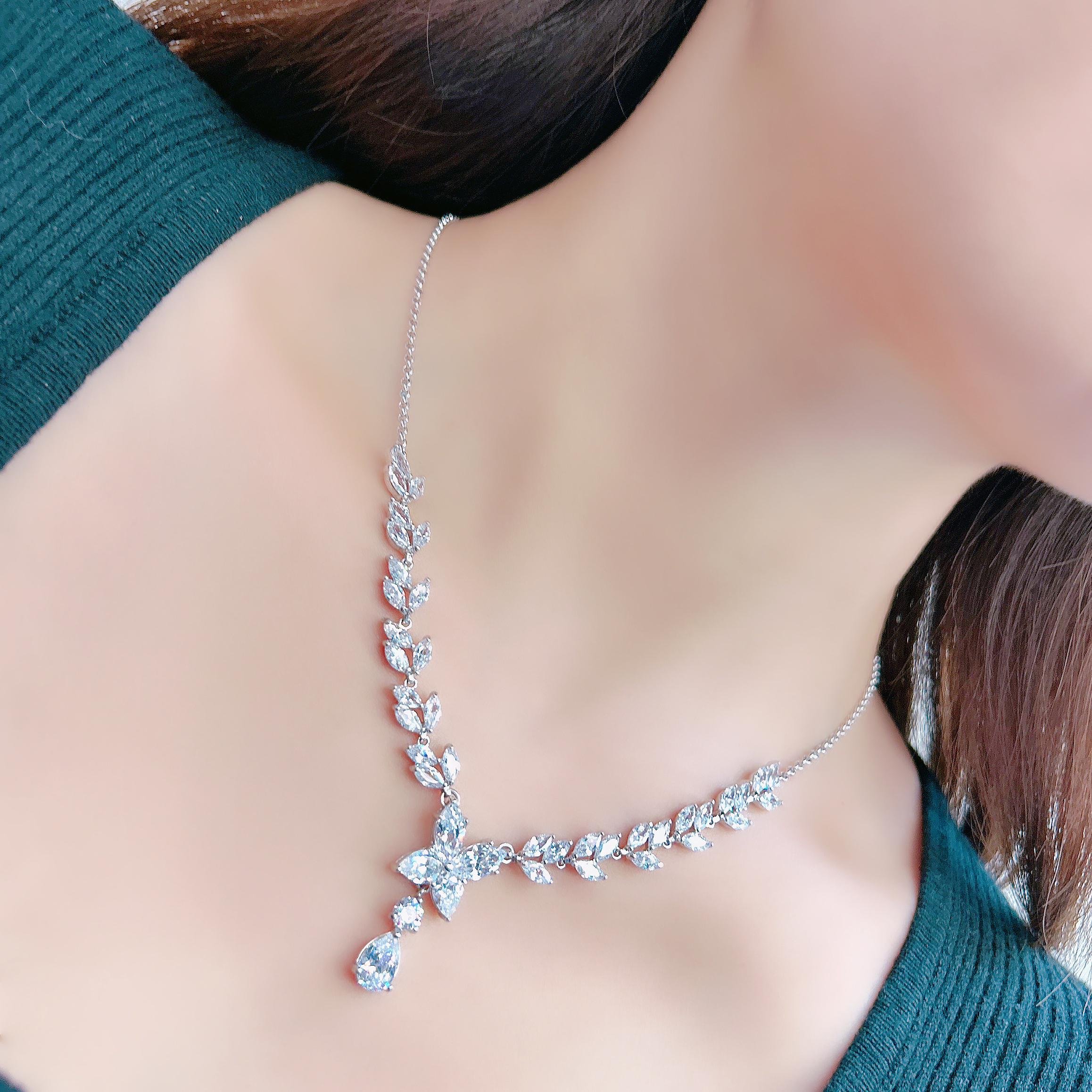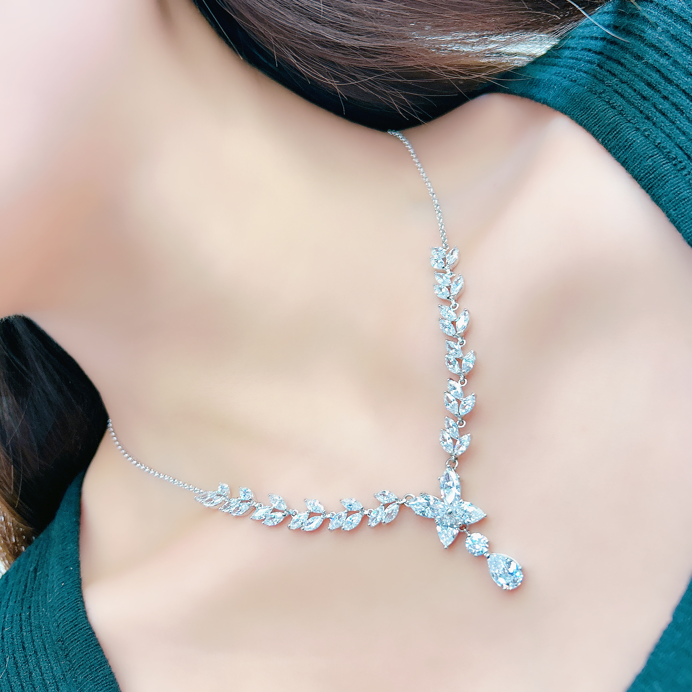 💎 葉影垂光 × 儀式感造型 這款頸鏈以葉形鋯石交錯排列,延伸至中央水滴主石,整體造型如花瓣綻放般優雅。層次分明的設計讓光線在每個角度都閃爍出細膩光芒,為鎖骨添上一抹高級感。 無論是婚禮造型、晚宴穿搭,還是想為日常加入一點儀式感,它都能成為妳造型中的焦點。 🤍 #鋯石頸鏈 #葉形設計 #垂墜美學 #JewelryDetails #ElegantStatement #頸鏈控 #MinimalGlam