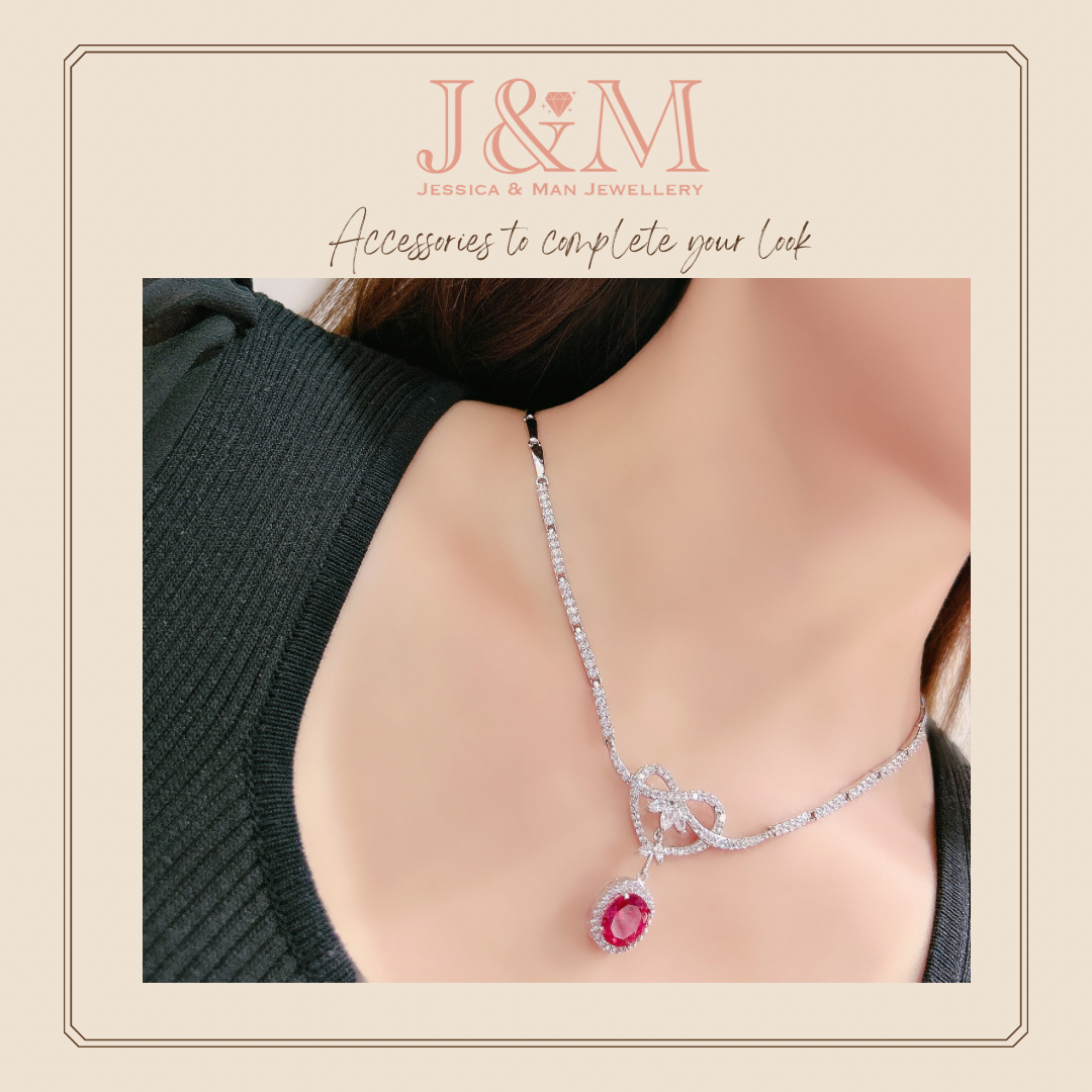 ❤️絲帶心形紅寶鋯石頸鏈N139222
